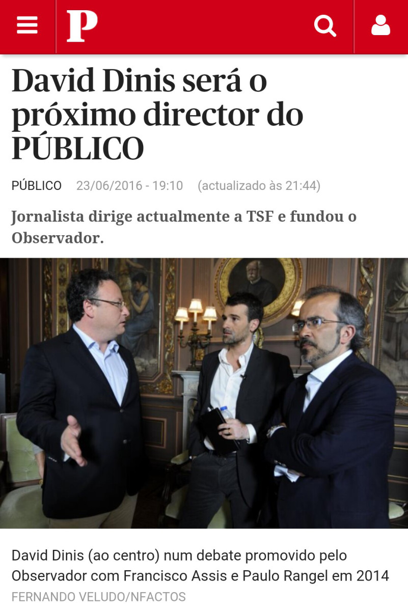 O recém-empossado director do “Público”, David Dinis, propôs reduzir a minha crónica semanal a mensal e cortar para metade a remuneração de cada crónica. Recusei por considerar que essa proposta esvazia o diálogo com o leitor e reduz a remuneração a algo indigno. Nenhuma outra proposta foi feita. Cumprirei, pois, o contrato que tenho até 31 de Março, e a partir daí encerra-se a minha relação de 19 anos com este jornal. Registo que isto acontece na sequência de David Dinis ter dispensado José Vítor Malheiros(link is external) e Paulo Moura(link is external), nomes fundamentais na história do “Público”, e do jornalismo português. Registo ainda o facto de os três estarmos claramente à esquerda do que é o posicionamento do recém-empossado director.